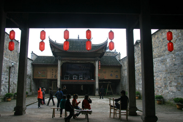 臨河戲臺(tái)幾乎天天都唱戲給烏舡子看。唱他們最愛看的湘劇,并且都是折子戲而非整場(chǎng)戲,因?yàn)檎麍?chǎng)戲常常要唱十天半月,烏舡子沒看得完就要返航。折子戲短,最切合烏舡子的停靠時(shí)日。唱的多半是“三國(guó)戲”:《空城計(jì)》、《定軍山》、《走麥城》、《三氣周瑜》,還有《黃鶴樓》、《摘梅桃》……數(shù)也數(shù)不完。戲班子都是由八元堂寧鄉(xiāng)會(huì)館從各地邀請(qǐng)來的,免費(fèi)公演。招呼戲班子的費(fèi)用由會(huì)館埋單,免不了要請(qǐng)到怡華樓、月華樓、奇珍閣等有名的飯館去吃“八大碗”,唱完戲還有夜宵招待,吃靖港的特色小吃。戲班子當(dāng)然就更賣力。烏舡子上的船老大不但愛看戲,還蠻會(huì)享受,他們把船搖得正正地對(duì)準(zhǔn)臨河戲臺(tái),和小老婆肩并肩雙雙坐船頭,一邊津津有味地看戲一邊津津有味地喝著靖港谷酒,吃著從靖港街上買來的香干子和鹵菜,搖頭晃腦,張嘴咋舌,樂不思蜀。也有許多古鎮(zhèn)居民來看免費(fèi)戲,他們常常爬到烏舡子上,與船老板和和老板娘一起看戲,船老板熱情大方,會(huì)讓出座位來,邊看戲邊和本地居民扯談,對(duì)古鎮(zhèn)也就更加熟悉了解。