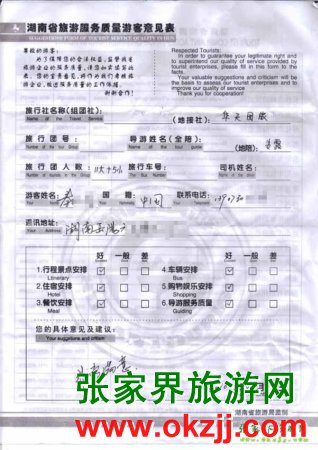 2010年7月13日岳陽秦先生一行16位旅游質(zhì)量反饋