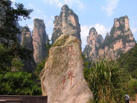 下午 "十里畫廊十里景,十里風(fēng)情待君行",下山后游覽巧奪天工的十里畫廊(選擇步行或乘坐觀光小火車單程23元/人.次、雙程33元/人.次),十里畫廊山清水秀,繁花似錦,百鳥爭鳴。境內(nèi)景物造型奇特:若人,若神,若仙,似林,似禽,似獸的石英砂巖峰林在云霧中時隱時現(xiàn),變化萬千!我們前往欣賞天臺、三姐妹峰、向王觀書、壽星迎賓、采藥老人、錦鼠觀天、猛虎嘯天等景點;乘環(huán)保車到武陵源門票站,出景區(qū),入住酒店。
